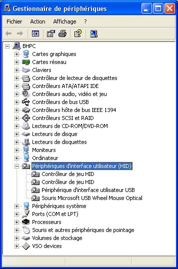 Lors de la connexion de l’adaptateur PSX à notre machine de test fonctionnant sous Windows XP, l’adaptateur est immédiatement reconnu par XP. Il est alors aussitôt opérationnel. D’ailleurs, un petit tour dans le gestionnaire de périphériques nous indique qu’il est reconnu comme deux « contrôleurs de jeu HID ».