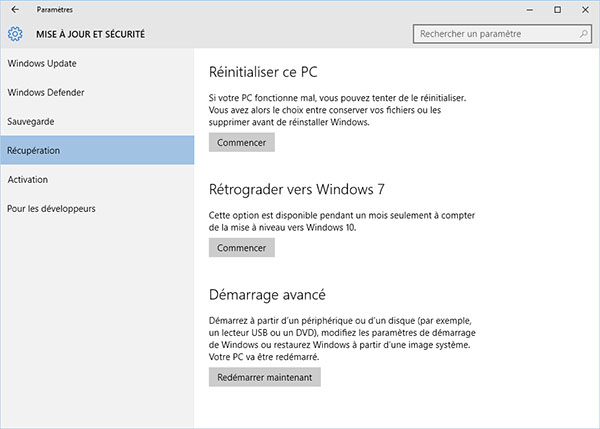 Voilà comment procéder pour rétrograder de Windows 10 vers Windows 7 / 8 :