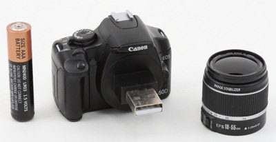 Cette clé usb en forme de Canon EOS 450D n’a été fabriquée qu’en quelques exemplaires seulement, parfois avec 2Go de capacité, parfois avec 4Go.