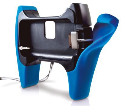 Et c’est, partant de ce constat que le constructeur Marware a décidé de s’intéresser aux iPhones et iPod Touch afin de proposer un accessoire de jeu : le Game Grip ! L’engin en question n’ajoute malheureusement pas de boutons ni encore moins de croix multi directionnel à l’appareil (dommage..) Mais il offre la particularité de donner à l’iPhone une forme de manette de jeux, censé améliorer grandement la prise en main des jeux. Conçu en caoutchouc, le Game Grip entoure l’iPhone ou l’iPod Touch et le maintient en place. Des ouvertures sur les côtés permettent de connecter un casque et le chargeur.