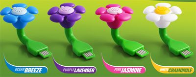 Si votre environnement de travail ne sent pas la rose, ou éventuellement si votre collègue de travail ne sent pas très bon, voilà un remède pour y remédier : le désodorisant usb en forme de fleur. Il existe en quatre coloris : bleu, violet, rose et blanc. Chaque fleur a une senteur différente : océan, lavande, jasmin et camomille.