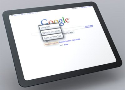Après Apple et sa tablette iPad, le géant Google pourrait bien lui aussi proposer un périphérique de ce genre. C’est du moins ce que laisse penser ce concept de tablette tactile mis au point par les développeurs de Chromium, le système d’exploitation de Google prévu pour la fin de l’année.