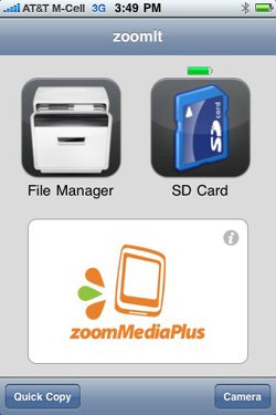 L’entreprise californienne ZoomMediaPlus a mis au point un lecteur de cartes mémoire pour iPhone. L’appareil se connecte simplement en prenant place dans le connecteur dock d’un iPhone ou iPod Touch.