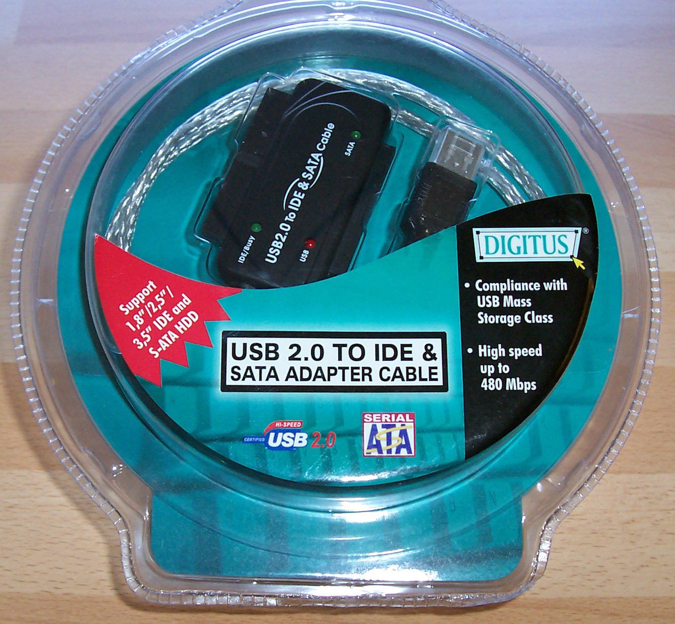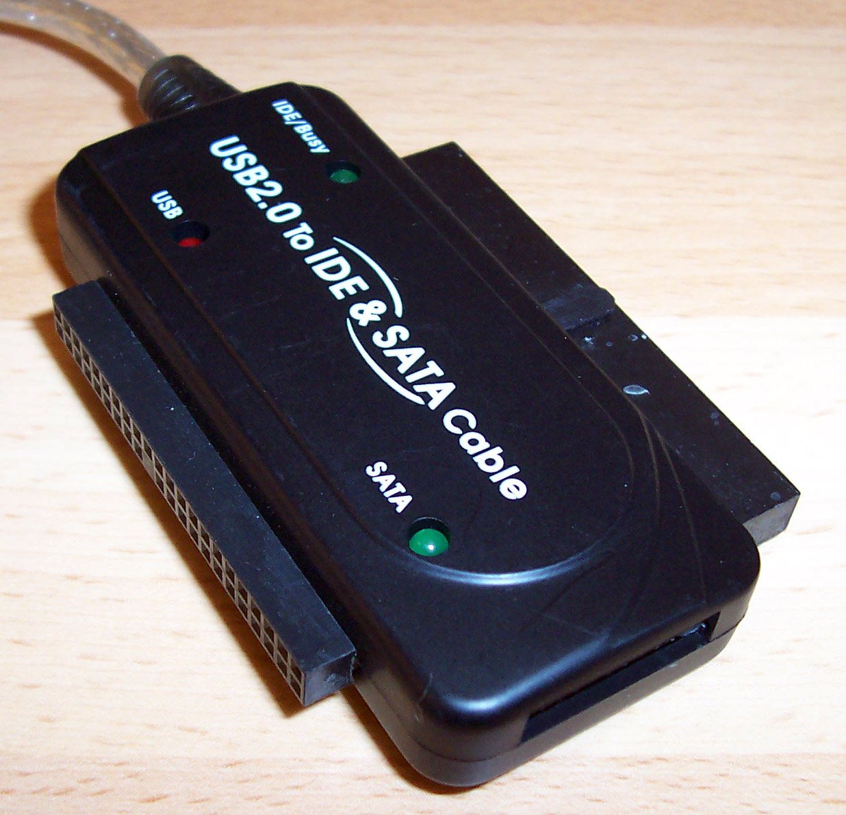« USB 2.0 to IDE & SATA Adapter Cable », c’est sous ce nom barbare que j’ai découvert chez un de mes fournisseurs un sympathique petit accessoire USB. Terme technique anglophone que l’on peut traduire littéralement par « Convertisseur USB 2.0 vers IDE et SATA. »