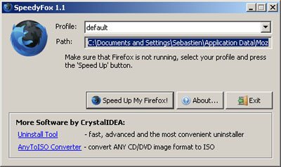 SpeedyFox est un programme gratuit qui ne pèse que 333 Ko. Pour le moment, seule une version pour Windows (compatible Windows 2000, XP et Vista) est proposée mais l’éditeur nous promet déjà une version pour MAC d’ici peu.
