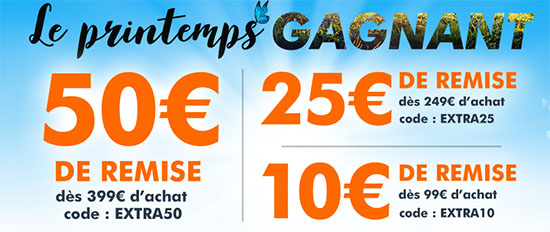 – 50€ de remise dès 399€ d’achats avec le code EXTRA50