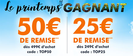 – 50€ de remise dès 499€ d’achats avec le code TOP50