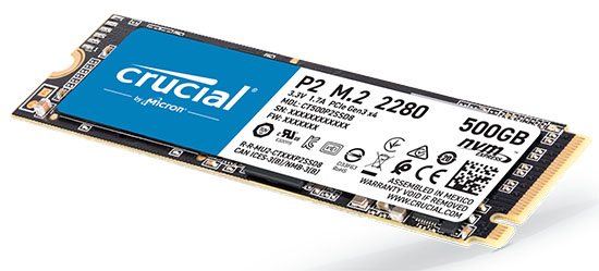 Le Crucial P2 est un SSD M.2. qui exploite une interface PCI-Express 3.0 4x compatible avec la norme NVMe. Il offre des taux de transfert de 2400 Mo/s en lecture et de 1800 Mo/s en écriture.