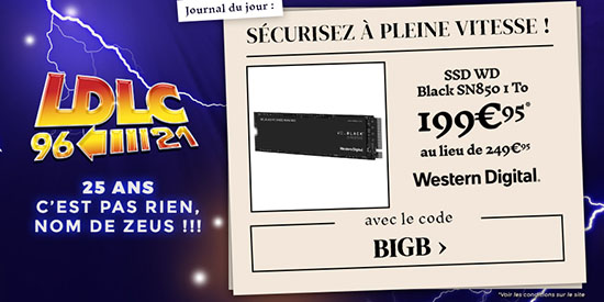 – WD Black SN850 1 To à 199,95€ chez LDLC (via le code « BIGB »)