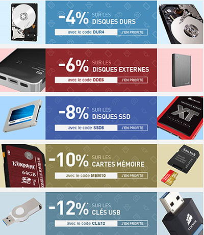 – 4% de remise sur tous les disques durs avec le code promo « DUR4 »