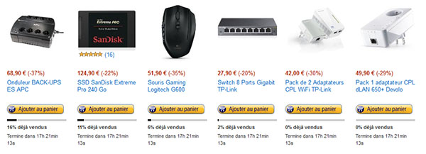 Le cybermarchand Amazon.fr profite d’une nouvelle série de ventes flash pour brader le prix de plusieurs produits : un SSD, un onduleur, une souris pour gamer, un switch réseau 8 ports, un adaptateur CPL Devolo et un kit CPL / WIFI TP-Link.