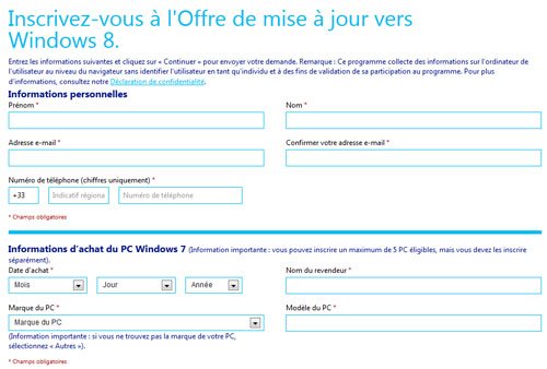 Nous avons tenté l’opération et effectivement aucune vérification n’est faite pour savoir si les informations que vous avez fournies sont exactes. Après avoir complété le formulaire et y avoir indiqué un PC de marque « Autres », nous avons reçu au bout de quelques minutes un numéro de série valide ainsi que la version téléchargeable de Windows 8. Tout ça pour 15 euros.