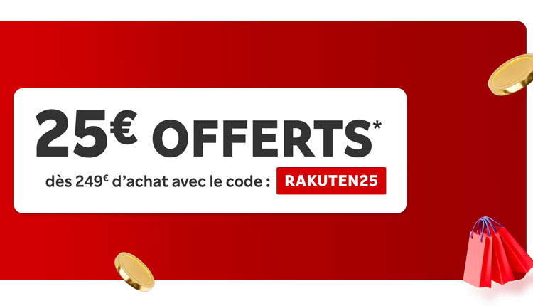 - 25€ de remise dès 249€ d’achats avec le code RAKUTEN20