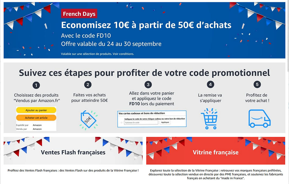 French Days 2024 : le site Amazon.fr offre 10€ de remise dès 50€ d’achats (maj : dernier jour pour en profiter)