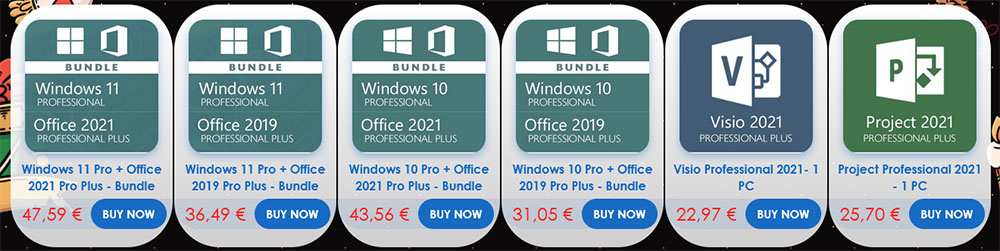 - Microsoft Office 2021 Professional Plus – 3 clés à 99,99€ (soit 33,33€/clé)