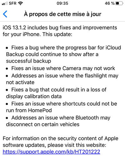 Changelog iOS 13.1.1 (traduction Google)