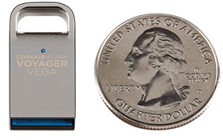 Corsair étoffe sa gamme de clés Flash Voyager avec un nouveau modèle : la Vega, une clé USB 3.0 très très compacte, à peine plus grande qu’une pièce de monnaie. La clé est disponible en trois capacités : 16, 32, et 64 Go annoncées à respectivement 20$, 25$ et 45$. Pour le moment, les débits n’ont pas été précisés par le fabricant. Sachez néanmoins que la Flash Voyager Vega sera disponible très prochainement dans l’hexagone.