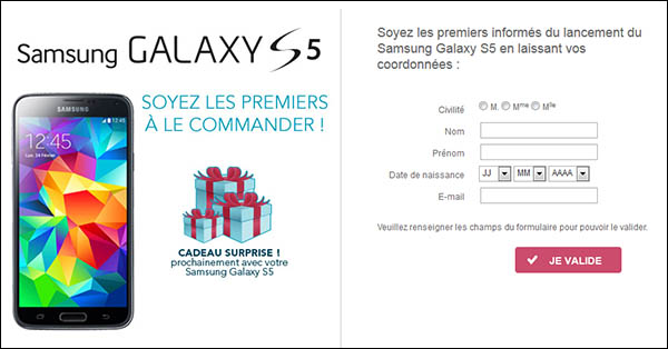 Mise à jour : Le Samsung Galaxy S5 sera disponible à la vente le mois prochain (le 11 avril) chez les opérateurs français (Bouygues Telecom, Free Mobile, SFR, Orange, etc..) et sur de nombreuses boutiques en ligne. Son tarif sera de 649€ quel que soit le point de vente.