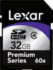 De son côté, la seconde carte est une SDHC de 32Go issue de la gamme Premium du fabricant. Il s’agit d’une carte de class 4 pouvant supporter un débit de 60x. D’après Lexar, la carte pourra supporter une vitesse de 9Mo/s en écriture et de 12Mo/s en lecture. Son prix : 105,90€.