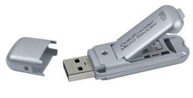 Kingston France annonce également l’arrivée sur notre territoire du DataTraveler Micro Reader : un lecteur de cartes mémoire original se présentant sous la forme d’une clé usb. Ce lecteur supporte les cartes au format microSD, microSDHC, et Memory Stick Micro.