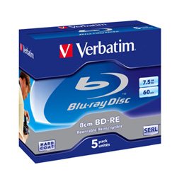 Après TDK c’est aujourd’hui au tour de Verbatim Europe d’annoncer la sortie de disques BD-R et BD-RE de 8cm. Pour rappel, ces médias qui offrent une capacité de stockage de 7,5Go, sont destinés avant tout aux caméscopes numériques.