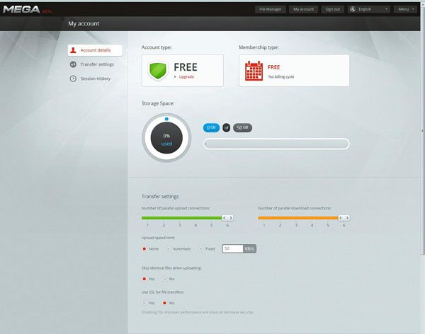 Mega sera un site de stockage en ligne dont le principal atout sera la sécurité. Les données stockées par les membres seront en effet automatiquement chiffrées avant leur envoi sur le cloud grâce au programme « Online Mega Manager » et seul les personnes en possession de la clé de déchiffrement pourront lire les données.