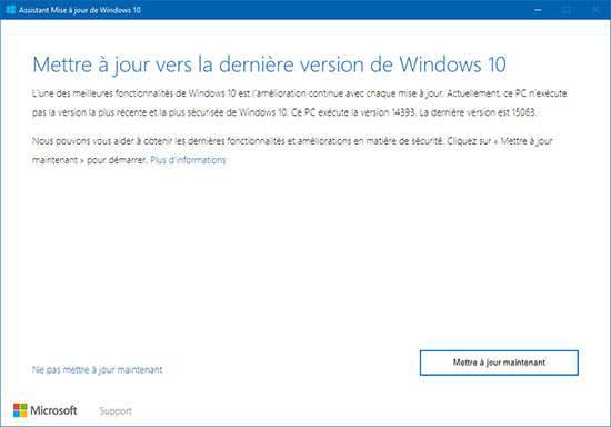 Le fichier Windows10Upgrade9252.exe n’est autre que l’assistant de mise à jour de Windows 10. Il va permettre de passer de la version 14393 de Windows 10 à la toute dernière version 15063 de l’OS.