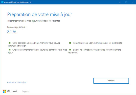 Puis l’assistant de mise à jour va télécharger la Creators Update et l’installer.