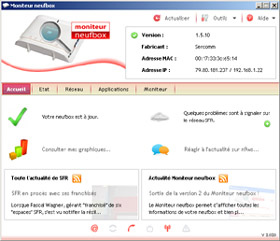 Ce programme que nous vous présentions dans cette actualité vient de passer la seconde… Destiné aux abonnés de SFR – Neuf, ce programme permet d’obtenir de nombreuses informations concernant sa NeufBox 4 et l’état de sa ligne téléphonique et adsl.