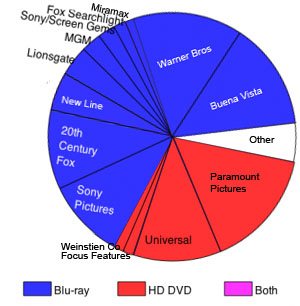 Comme on peut le voir sur le graphique ci-dessous publié par MacRumors.com, le format Blu-ray est largement plus plébiscité par les studios de cinéma que le format HD-DVD.