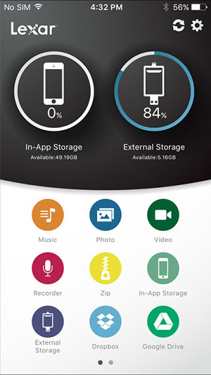 Il est donc possible d’utiliser la JumpDrive C25i pour étendre la capacité de stockage d’un terminal Apple. L’installation de l’application Lexar Media Manager est par contre nécessaire (lien Appstore).