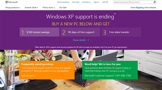 Microsoft incite les utilisateurs de Windows XP à passer à Windows 8.1, une réduction de 100$ à la clé…