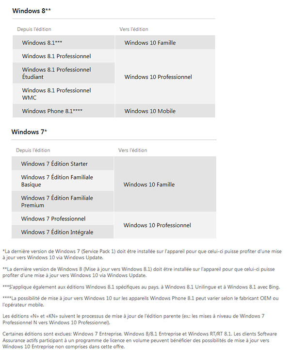 éligibles, pendant un an après la disponibilité de la mise à jour vers Windows