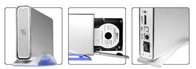 Le fabricant nous indique que le châssis en aluminium est silencieux. Au niveau de la connectique, sachez qu’il exploite l’interface USB 2.0 et l’interface eSATA.