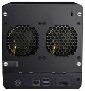 Mis à part une consommation électrique revue à la baisse (29,7W contre 56W), les autres caractéristiques technique de l’appareil restent similaires. L’engin qui mesure 184 x 168 x 230 mm peut en effet accueillir indifféremment quatre périphériques de stockage SATA au format 2,5 ou 3,5 pouces. Et les performances peuvent monter à 105 Mo/s en lecture et 47 Mo/s en écriture.
