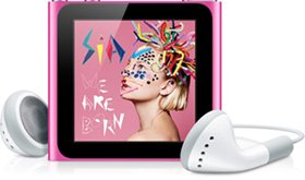 Plus petit que le modèle précédent, ce nouvel iPod Nano se dote désormais d’un mini écran tactile. Les fonctions VoiceOver et RadioFM sont toujours de la partie. L’autonomie passe à 24 heures. Ce nouvel appareil existe en six coloris (gris clair, gris foncé, orange, rose, vert et bleu) et en deux capacités de stockage : 8 Go (169€) et 16 Go (209€)
