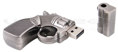 Rassurez-vous, ce n’est pas une vraie arme à feu mais simplement une clé USB en forme de flingue. L’idée