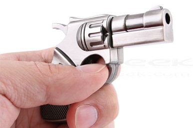 Le révolver mesure 71 x 52 x 15mm et pèse 67 grammes. Il est disponible sur le site usbgeek.com au prix de 23 dollars.