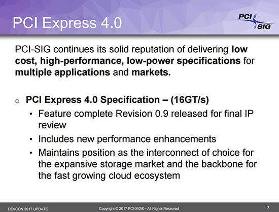 Lentement mais sûrement, la norme PCI Express suit son petit bonhomme de chemin. Et alors que nous en sommes toujours à la version 3.0, le consortium PCI-SIG parle de la version 4.0 qui est en passe d’être finalisée. Sa sortie ne devrait toutefois pas avoir lieu avant la fin de l’année ou début de l’année prochaine.
