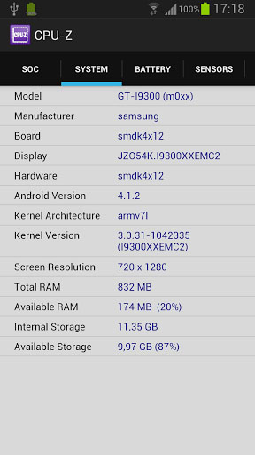 Sur la plateforme de Google, CPU-Z recense les différents composants de la machine que ce soit le processeur, le nombre de cores, leurs fréquences de fonctionnement, la quantité de mémoire vive, l’espace de stockage total, l’espace disponible, la marque et le modèle du terminal, le modèle de la tablette ou du smartphone, la version d’Android, etc…