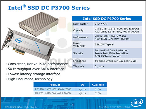 Les Pro 2500 Series, DC P3700 Series et les DC P3500 Series sont attendus tous les trois pour le deuxième trimestre 2014. Ils seront couverts par une garantie constructeur de cinq ans.