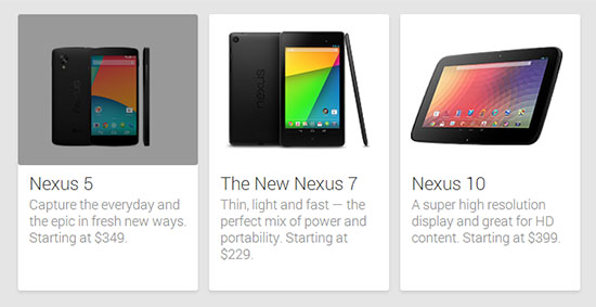 Dernier détail et non des moindres : Google a publié accidentellement (sic!) la fiche produit du Nexus 5 hier soir sur sa boutique en ligne, Google Play. Une bévue qui a été corrigée depuis mais qui aura permis notamment de révéler le prix de vente officiel du terminal. Il faudra donc apparemment débourser 349 dollars pour s’offrir le Nexus 5 de 16 Go.