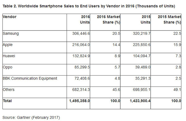 Smartphones : 1,5 milliards d’appareils ont été vendus en 2016