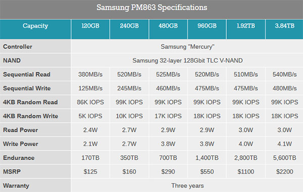 Les caractéristiques de la gamme PM863 :