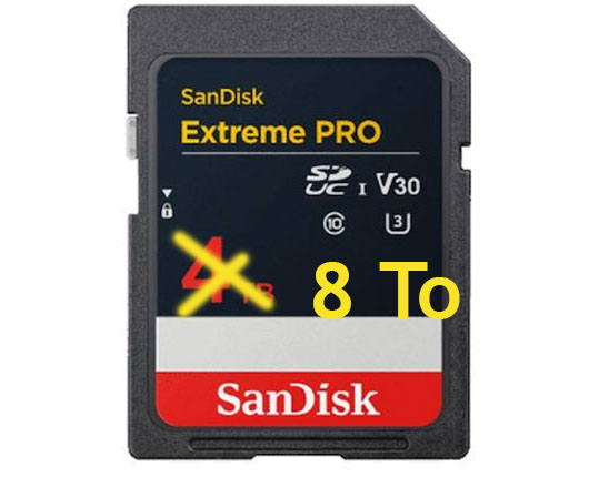 - une carte mémoire SDUC SanDisk de 8 To : Il s’agit là encore de la toute première carte à ce format à offrir une si grande capacité de stockage.