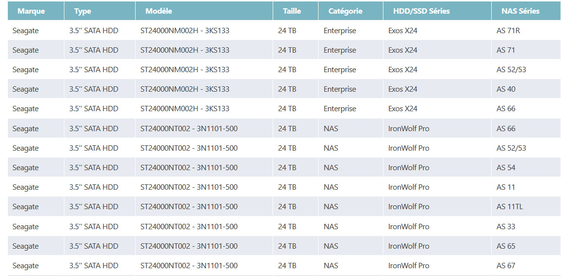 Le fabricant ASUSTOR, bien connu pour sa gamme de NAS, vient d’amnoncer la prise en charge des disques durs de 24 To du constructeur Seagatate.