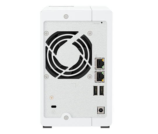 Le TS-216G dispose d’un port Ethernet à 2,5 Gps qui supporte d’après le fabricant des taux de transferts de 291 Mo/s en download et de 288 Mo/s en upload. Il dispose également d’un port Ethernet Gigabit, de 2 ports USB 2.0 et d’un port USB 3.2 Gen1 (5 Gbps).