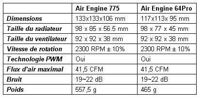 gamme de ventirads « Air Engine ». Destinés aux Sockets 775 et 64 pro, ces