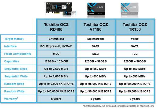 A noter par ailleurs que la marque OCZ s’efface peu à peu sur le site de Toshiba. Désormais, la marque nippone se met plus en avant. Les SSD OCZ Vector 180 et Trion 150 ont d’ailleurs été rebaptisés en VT180 et TR150.