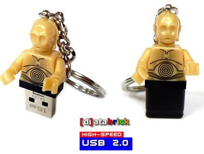 Dernière trouvaille en date : cette clé usb à l’effigie de C3PO faite à partir d’une figurine de LEGO datant de 2002 et d’une mémoire flash. Mémoire dont la capacité s’élève à 16 Go.